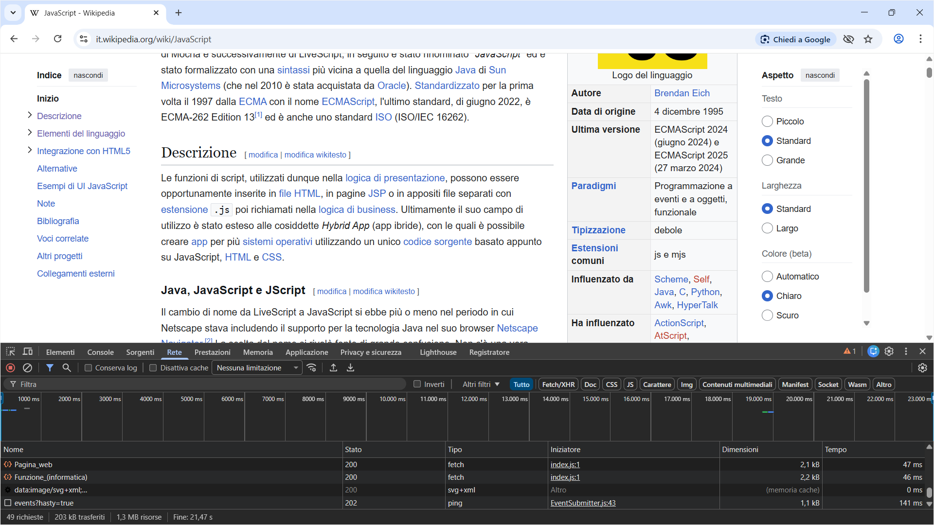 Il browser raccoglie tutte le richieste HTTP che fa per caricare una pagina e le mostra in tempo reale. Lo possiamo osservare dai DevTools:
